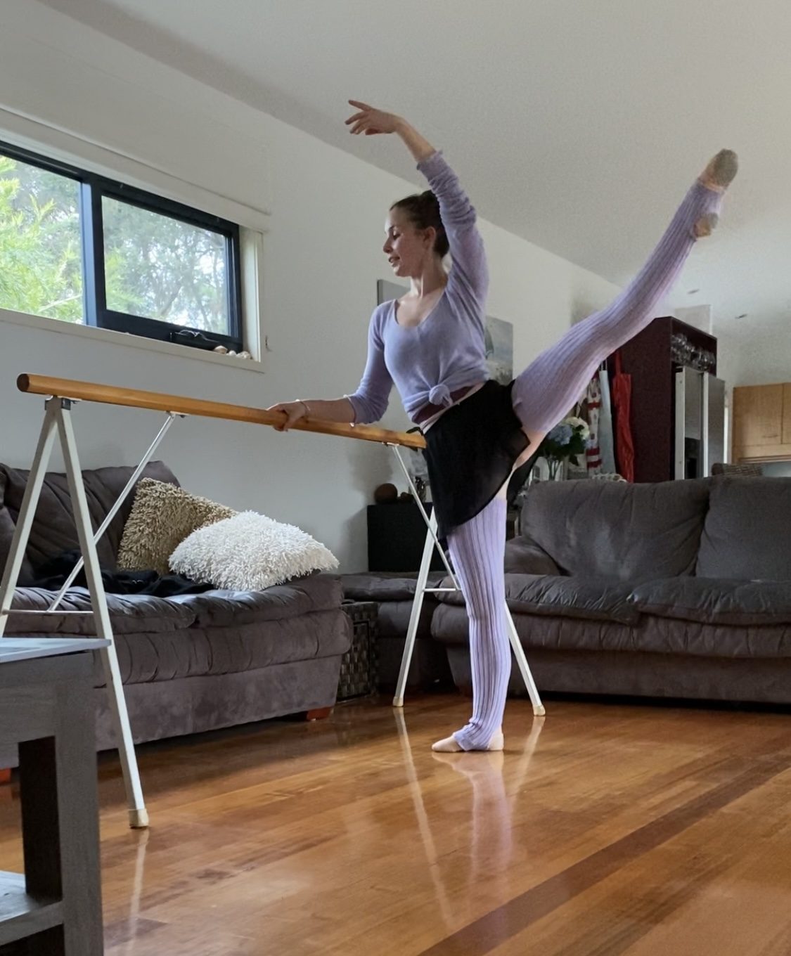 Jasmine at the barre during one of the many zoom classes PSD held throughout 2020/2021