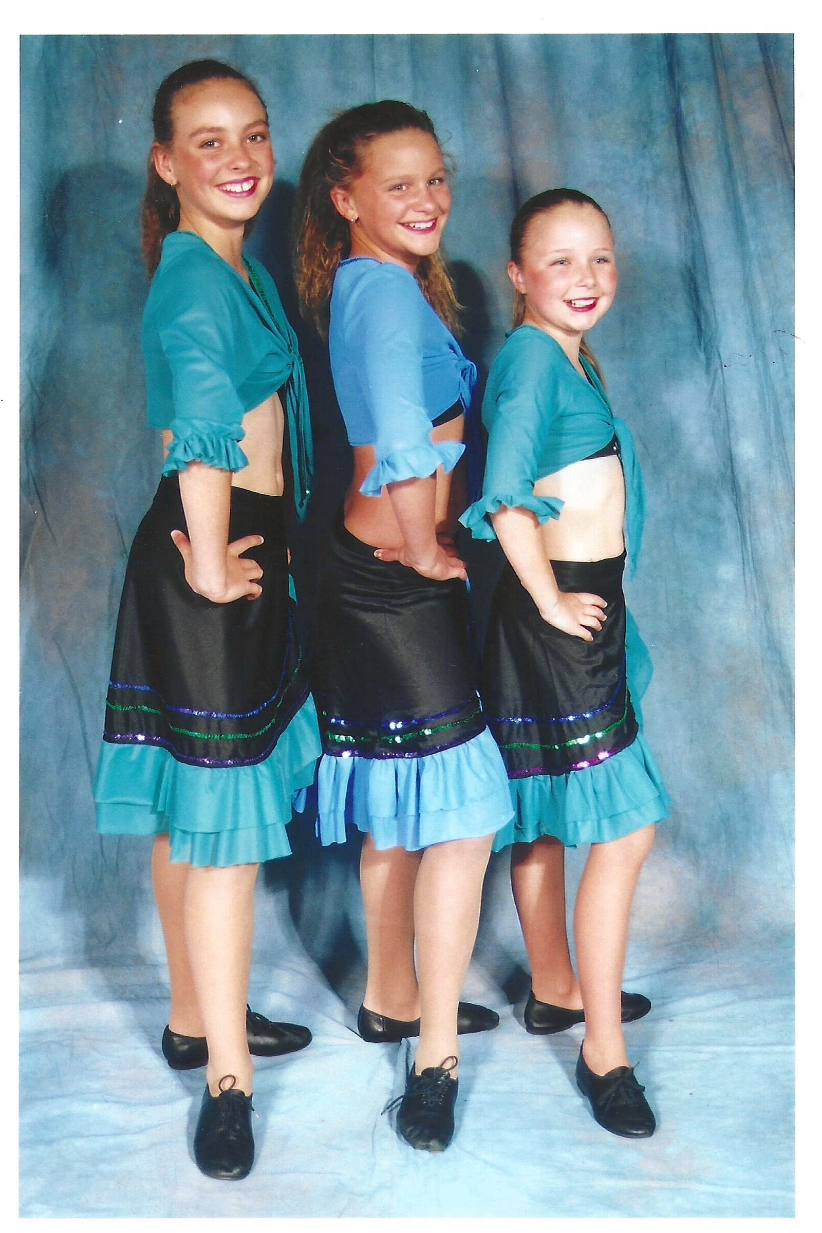 Jasmine with two of her dance friends Tessa and Kayla, 2002